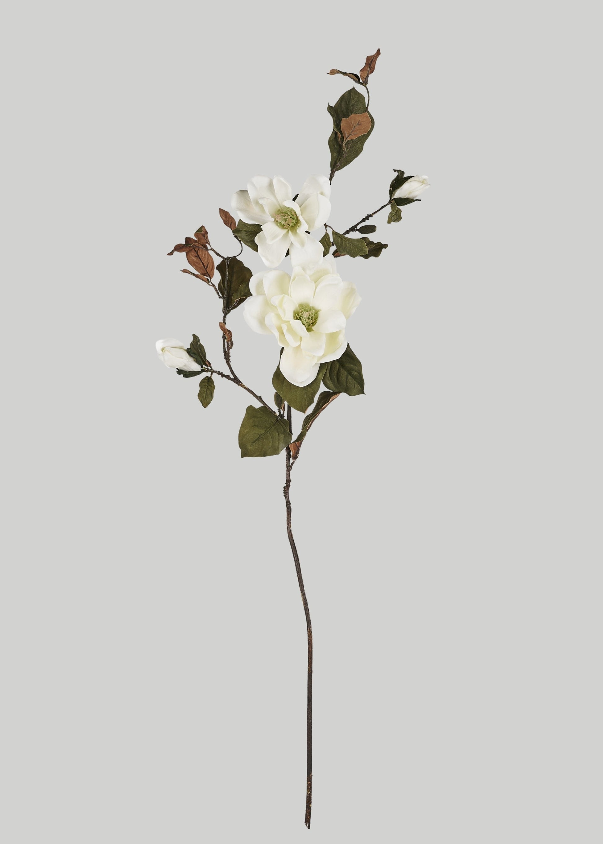 Elevate your decor with the timeless elegance of our Artificial Blooming Magnolia Branch in Cream. Featuring exquisitely crafted, lifelike magnolia blooms in a soft cream hue, this faux branch adds a touch of sophistication to any space. The detailed petals and realistic texture capture the beauty of real Charleston magnolias, making it a perfect addition to floral arrangements, centerpieces, or as a standalone accent. Ideal for year-round display, this artificial branch offers enduring charm and a subtle, classic color that complements a variety of decor styles. Enhance your home with effortless beauty and lasting elegance with this stunning cream magnolia branch.