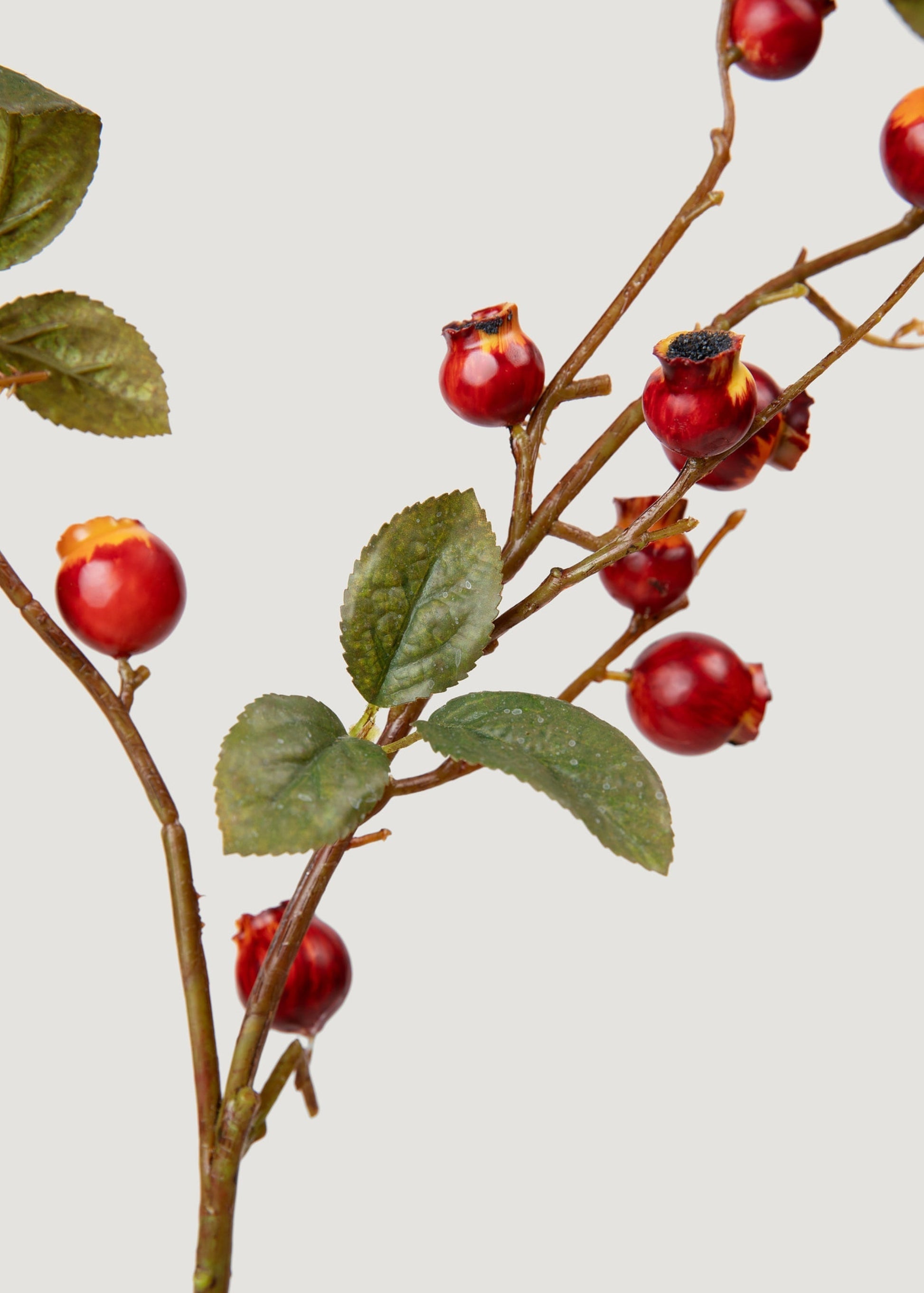 This dramatic and eye-catching faux crabapple fruit branch is the perfect accent stem for creating over-the-top botanical designs. It has striking burgundy artificial crabapples with rust orange accents, resulting in a rich paprika hue that brings warmth into your home's interior spaces. Style a few berry fruit branches in a vase, or add the fake berries to a flower arrangement for a stunning entryway table centerpiece!